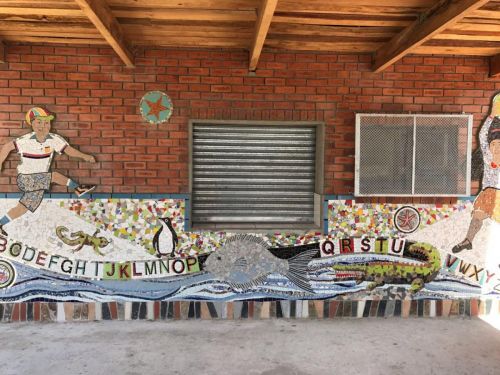 “We worked with the children on the design of a mosaic mural between the kitchen and the stage area,” explained Le Gras. “Professional mosaic artist, Mbuyiseli Somdaka, undertook the mural and workshops were arranged with some of the school pupils with learning disabilities to involve them in the mosaic work and create a vibrant area for them to enjoy.”